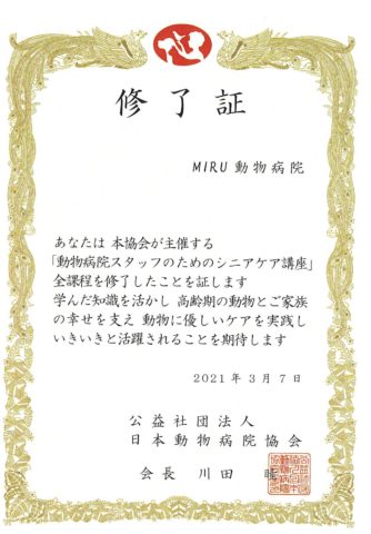 JAHA(日本動物病院協会)主催のシニアケア講座を11月~3月まで受講してきました。