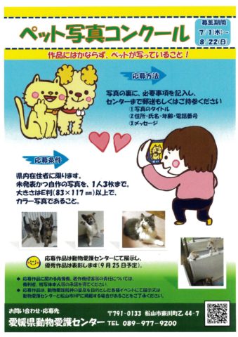 ※応募用紙は当院で配布を行っています。また、愛媛県動物愛護センターまたは松山市保健所のホームページよりダウンロードもできます。