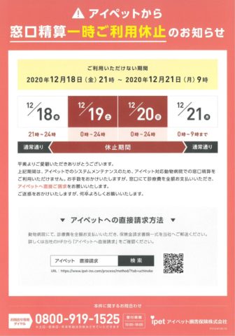 12/19(土)と12/20(日)はアイペットでのシステムメンテナンスのため、