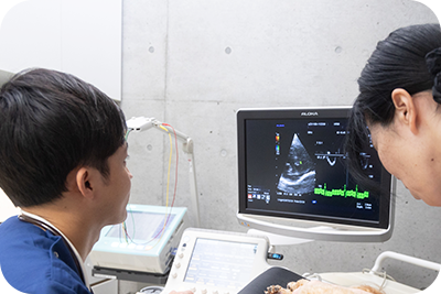 そのため、当院では循環器疾患に適切に対応するため、循環器専門診療施設へ獣医師を派遣し研修を実施しています。